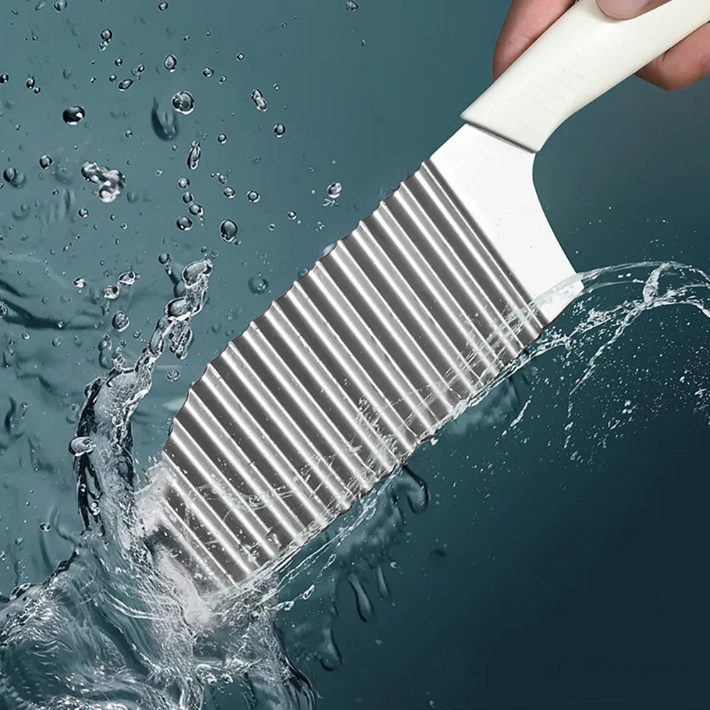 - Durable and Long-Lasting: Crafted from high-quality stainless steel, the Crinkle Cutter for Vegetables is built to last. Stainless steel is known for its strength, corrosion resistance, and ability to maintain sharpness over time, ensuring that the blade stays effective for years of use. The sturdy handle is designed for a secure grip and durability, so you can rely on the cutter for all your crinkle-cutting needs.