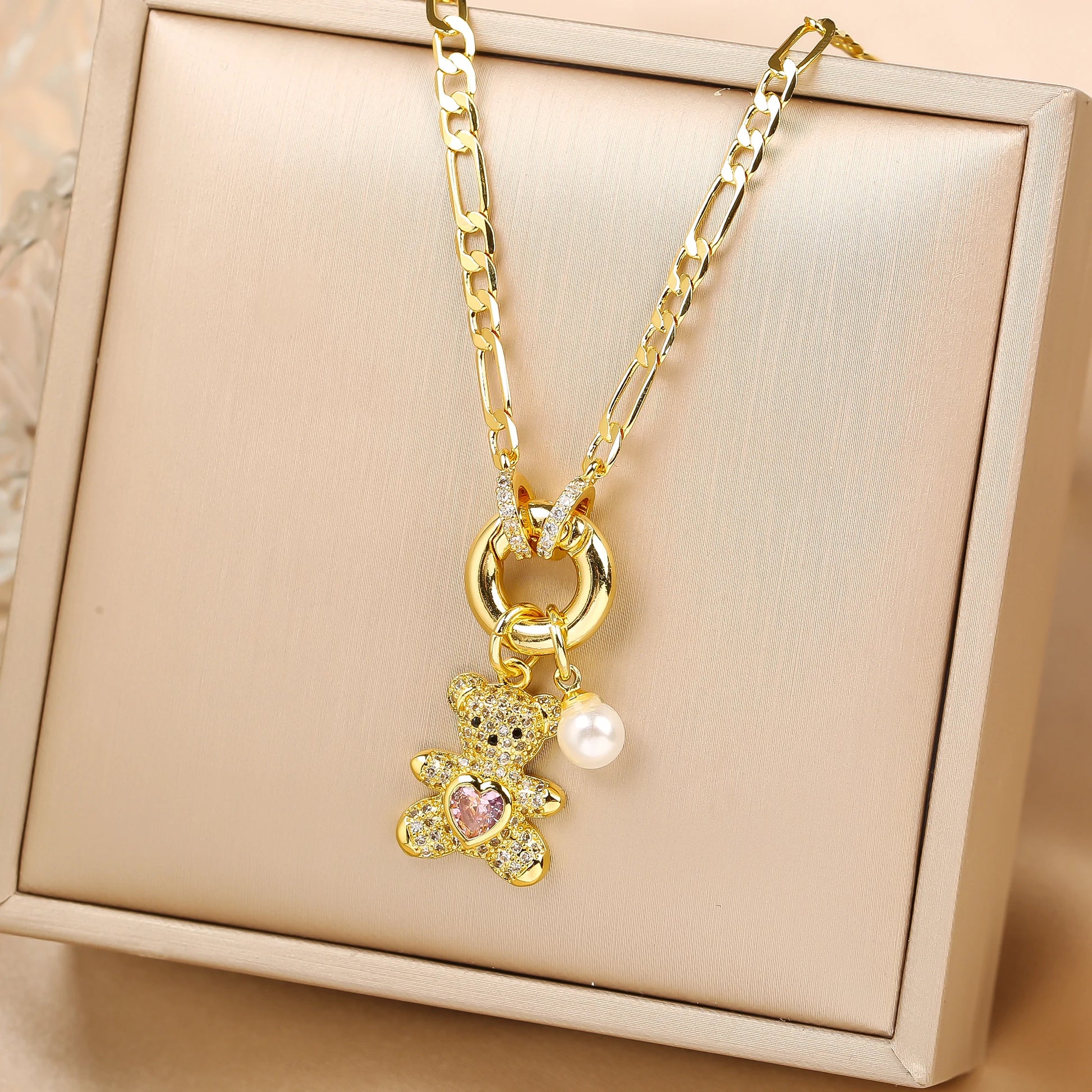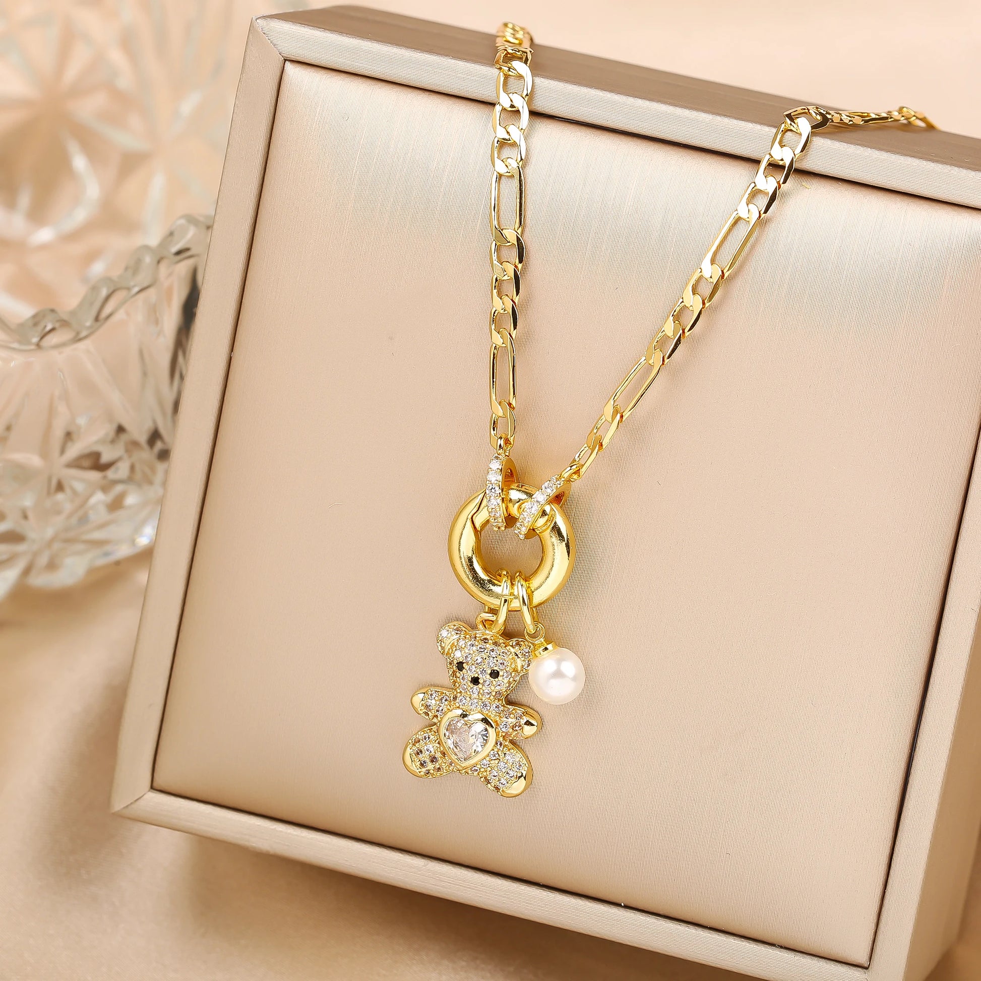 Sparkle in style with this high-quality crystal zirconia bear pendant necklace. Featuring a cute animal design and a polished gold-tone chain, it’s perfect for parties, birthdays, holidays, or daily wear. A charming gift for women and girls who love whimsical, elegant jewelry.
