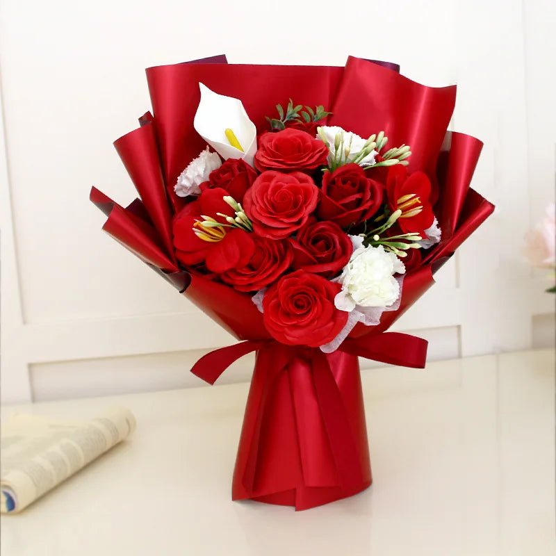 Express love and affection with this elegant eternal soap flower bouquet, beautifully arranged with rose, lily, and carnation designs. Crafted to create a lasting impression, this artificial bouquet brings charm and romance to any celebration. Perfect for gifting to a loved one, it’s an ideal choice for anniversaries, Valentine’s Day, weddings, Christmas, or special parties, adding a graceful decorative touch to indoor spaces.