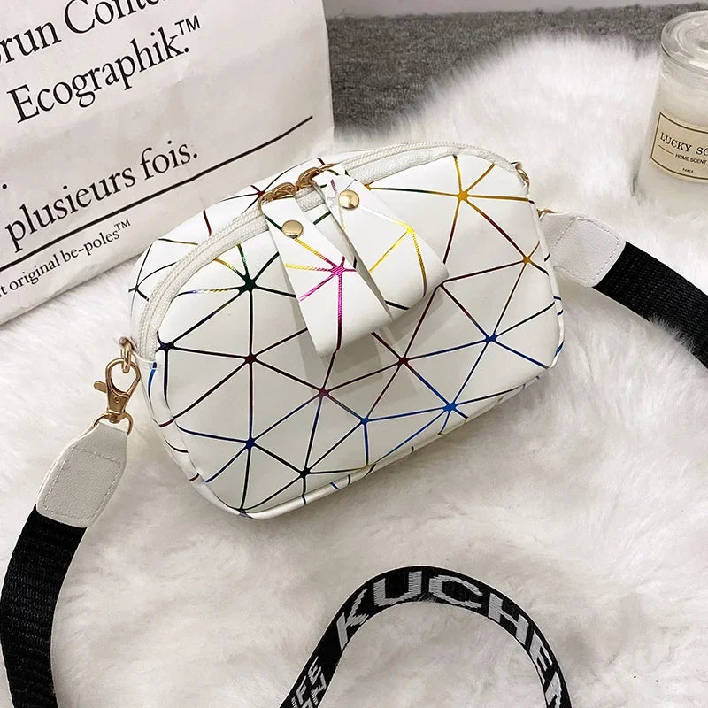 Compact and stylish crossbody bag with a geometric design. Made from durable PU material with a soft structure, perfect for daily use or casual outings.