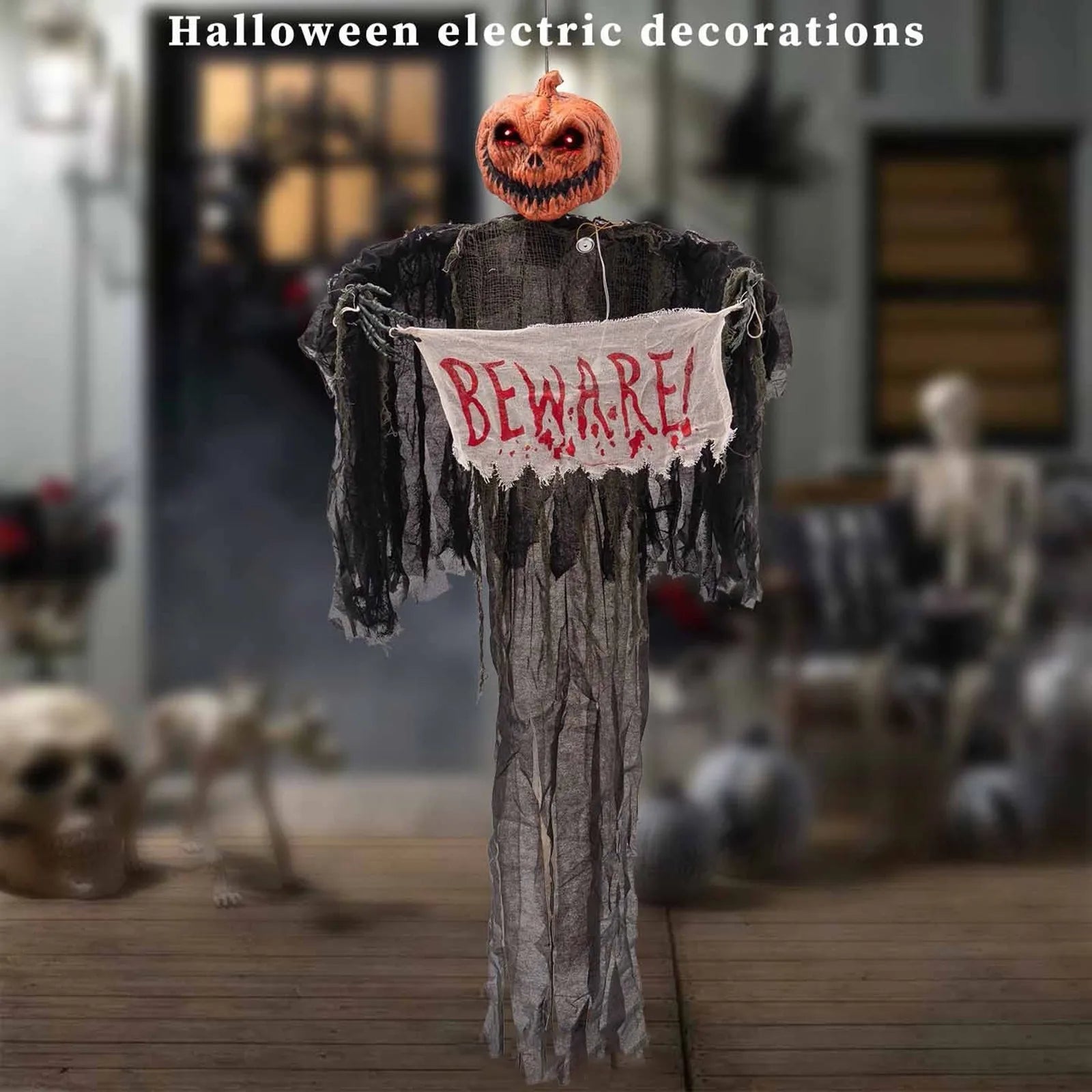 Turn your home into a haunted scene with this life-size hanging horror prop. Featuring glowing lights, creepy sounds, and voice activation, this decoration is designed to shock and thrill your guests. Perfect for Halloween parties, haunted houses, or outdoor displays.