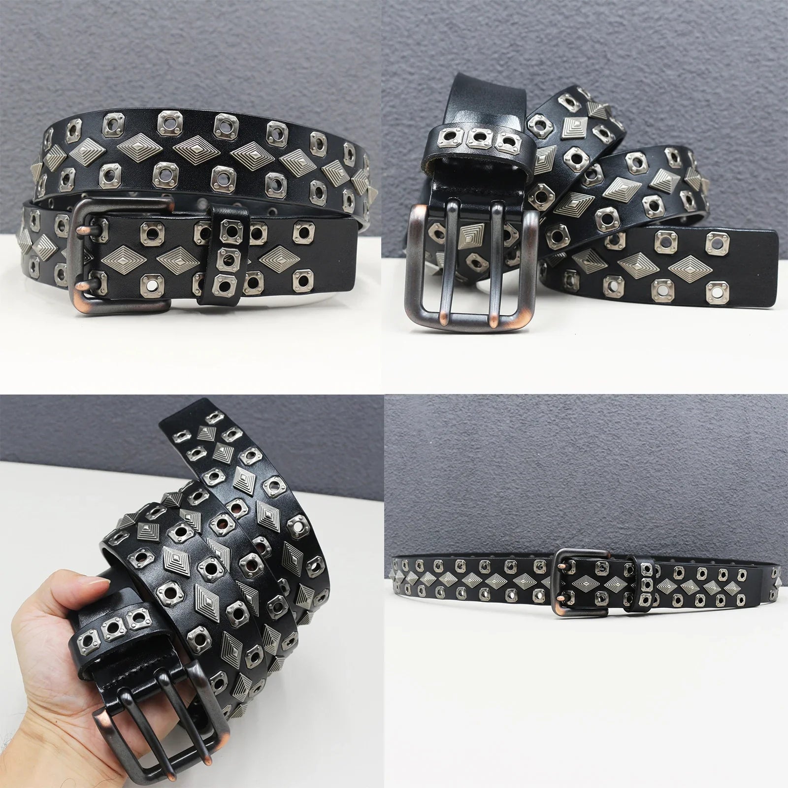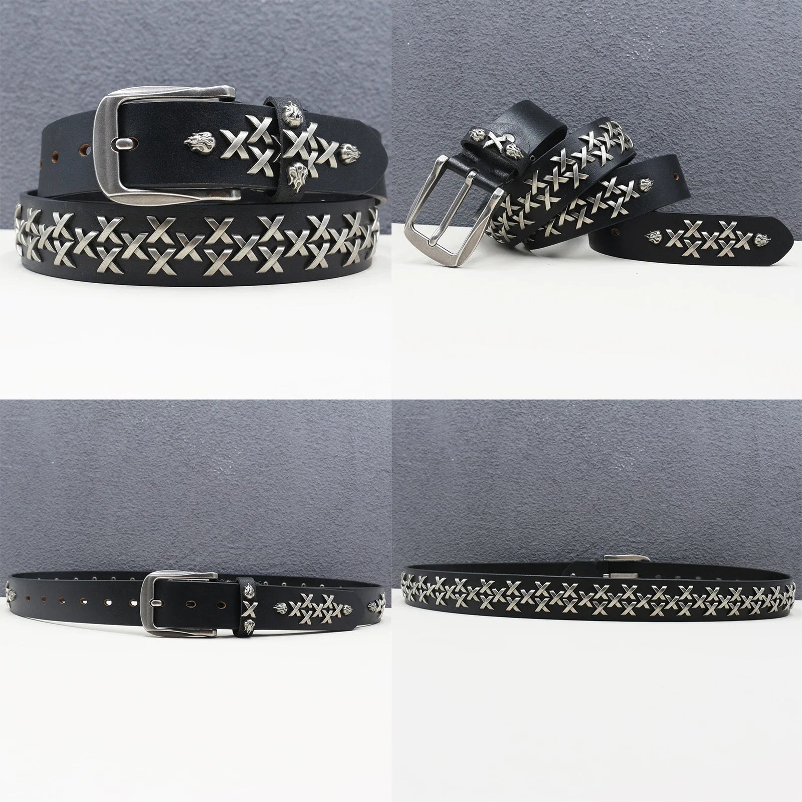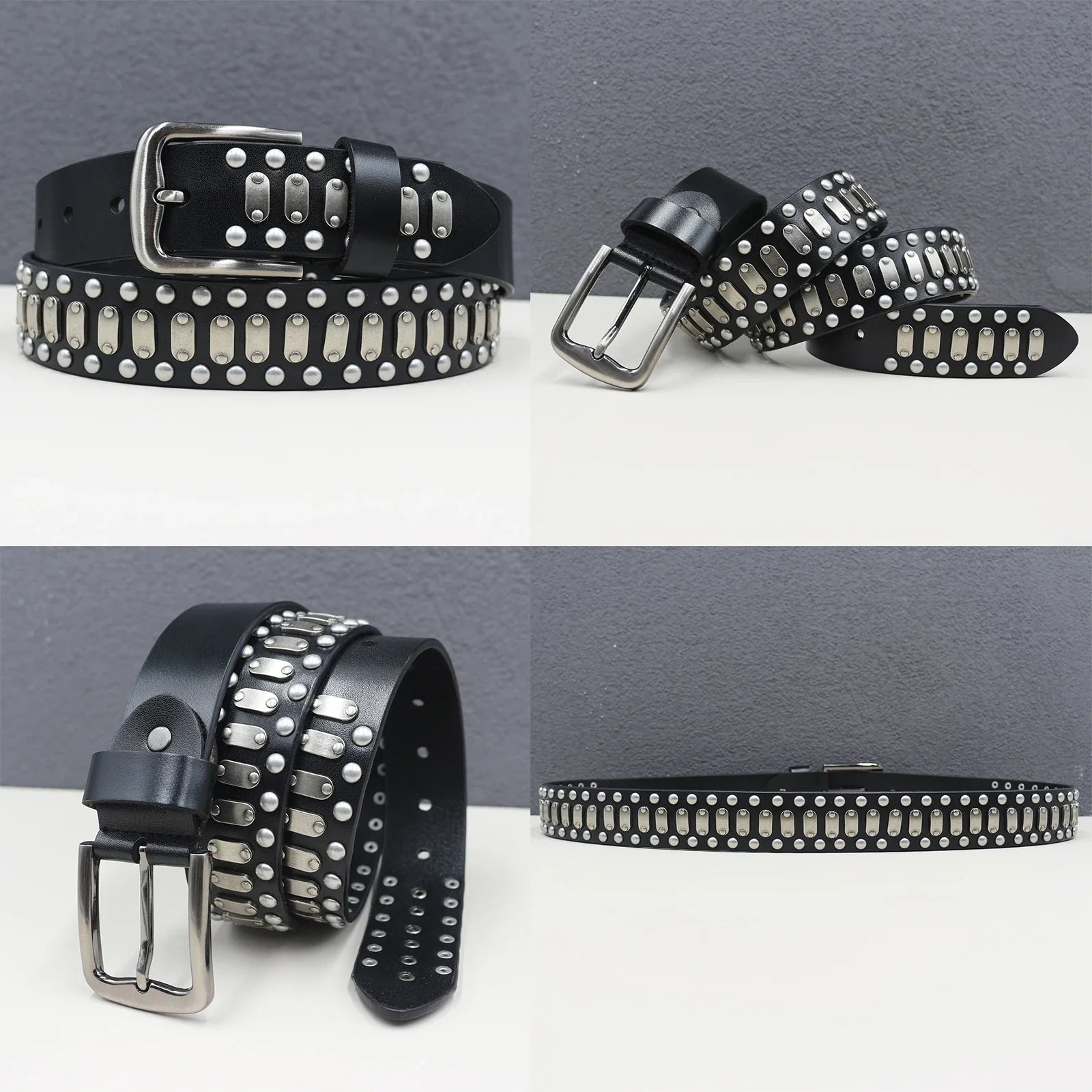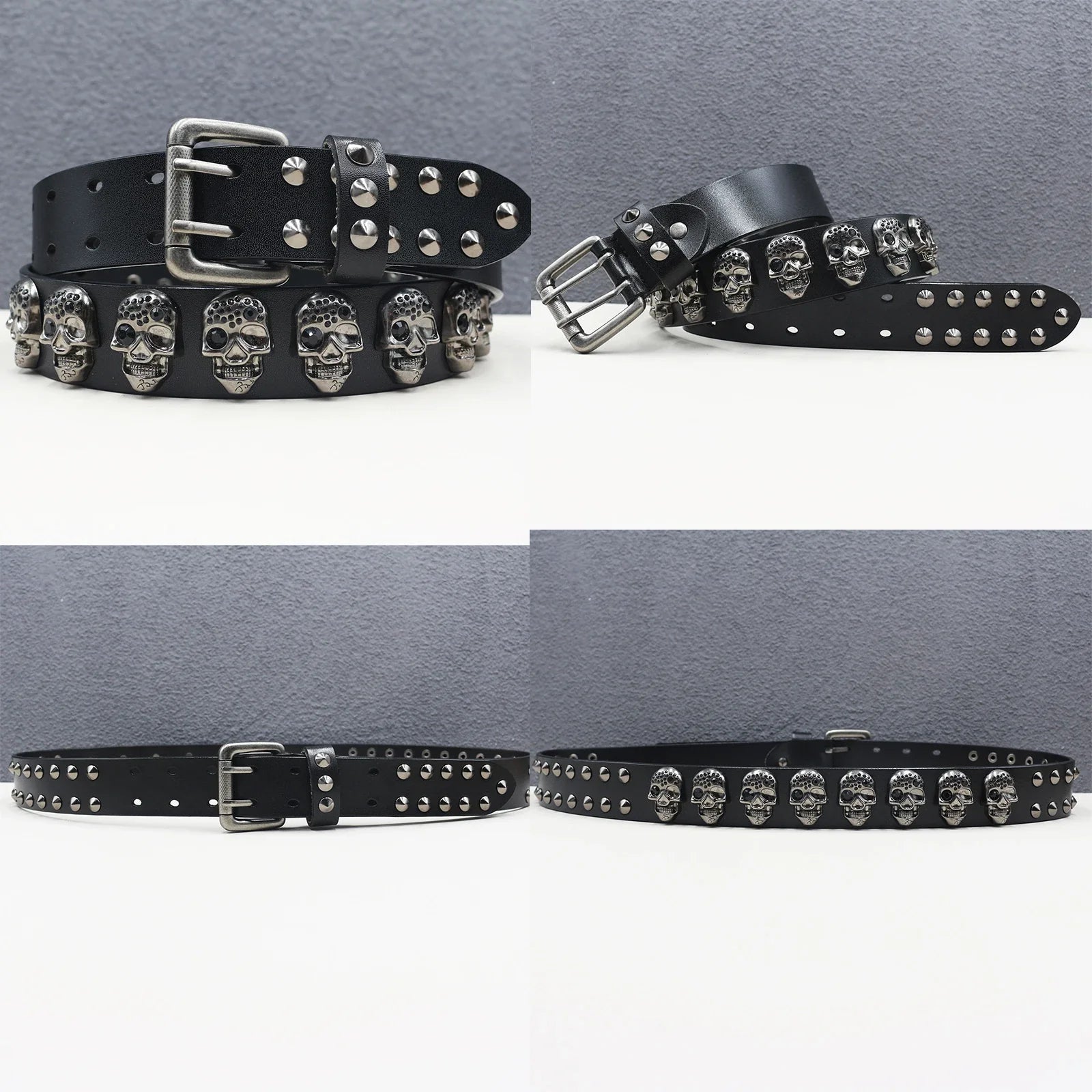 Make a bold statement with this heavy duty leather belt, featuring a goth-inspired skeleton rivet design for a trendy punk look. Crafted from genuine cowhide and split leather, it’s perfect for both men and women, ideal for hip-hop, Y2K, and subculture fashion styles.