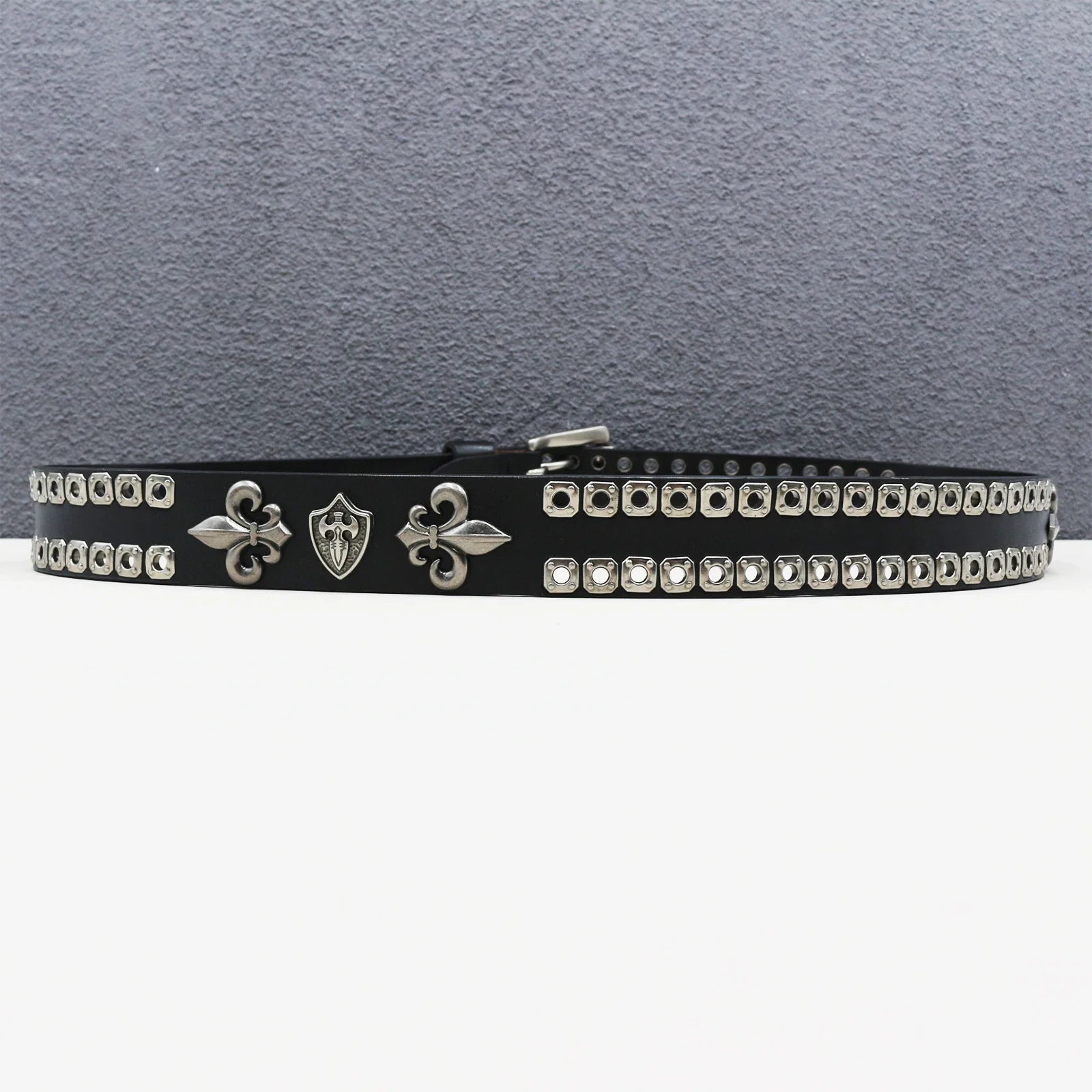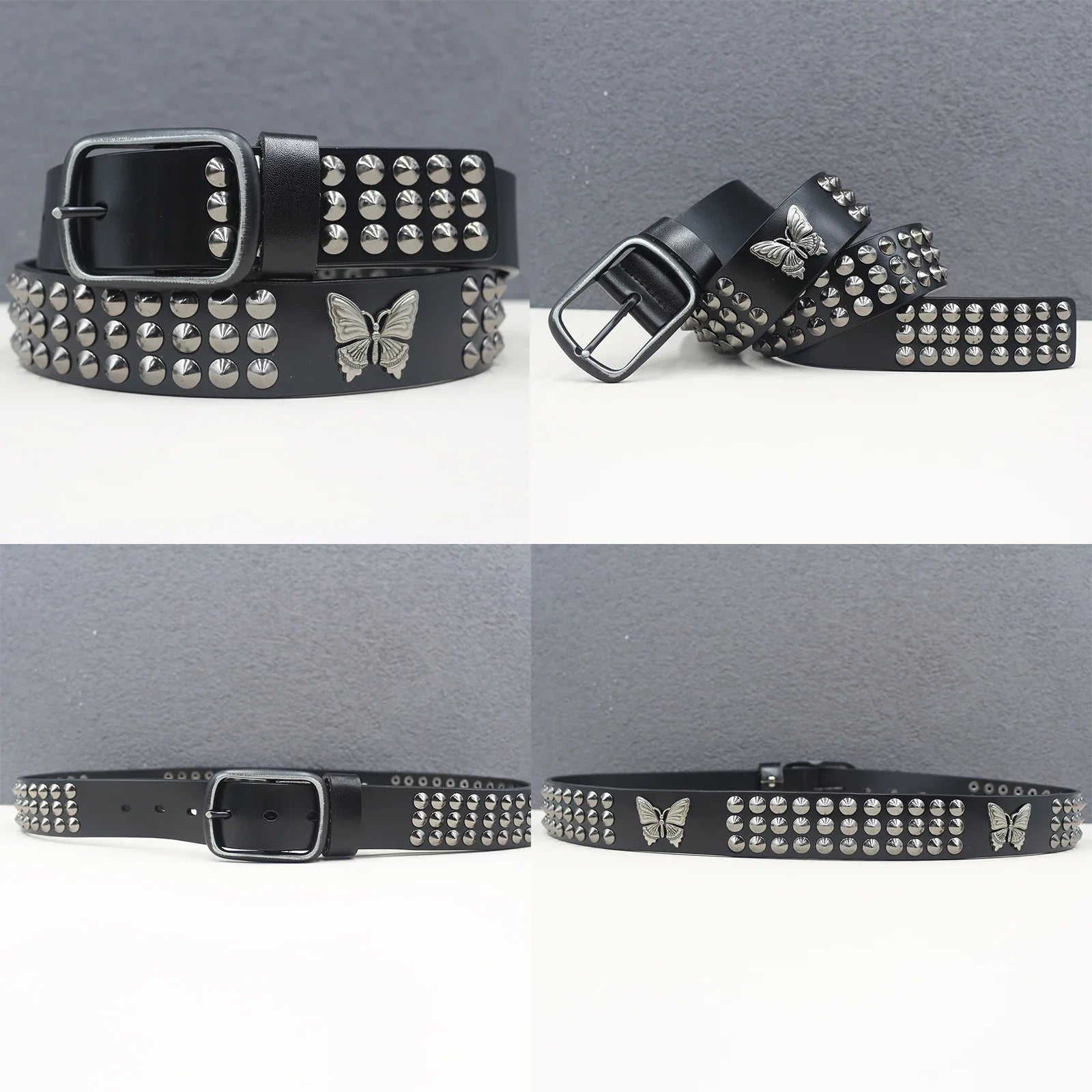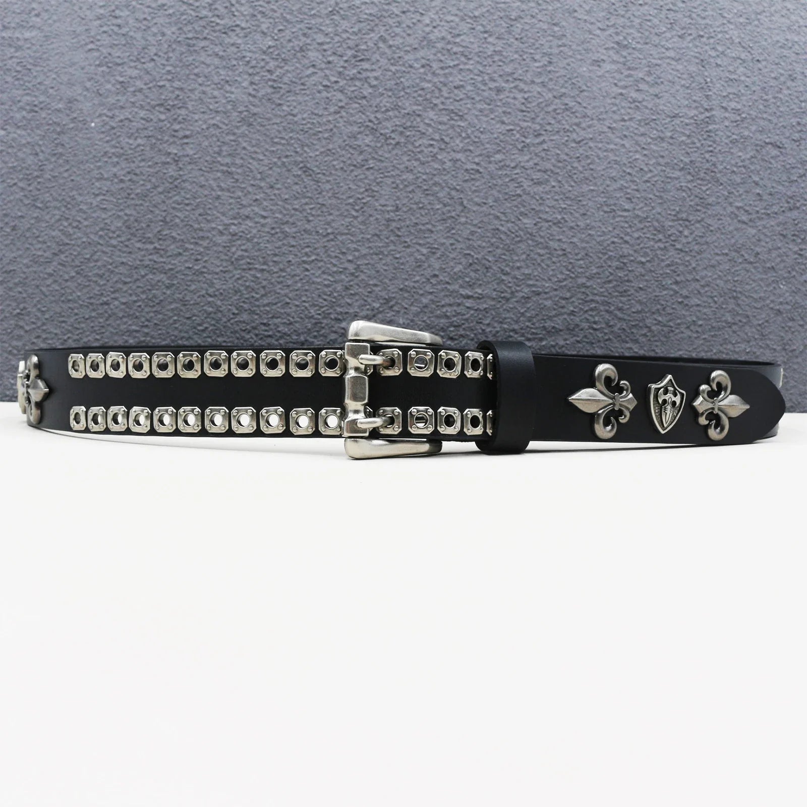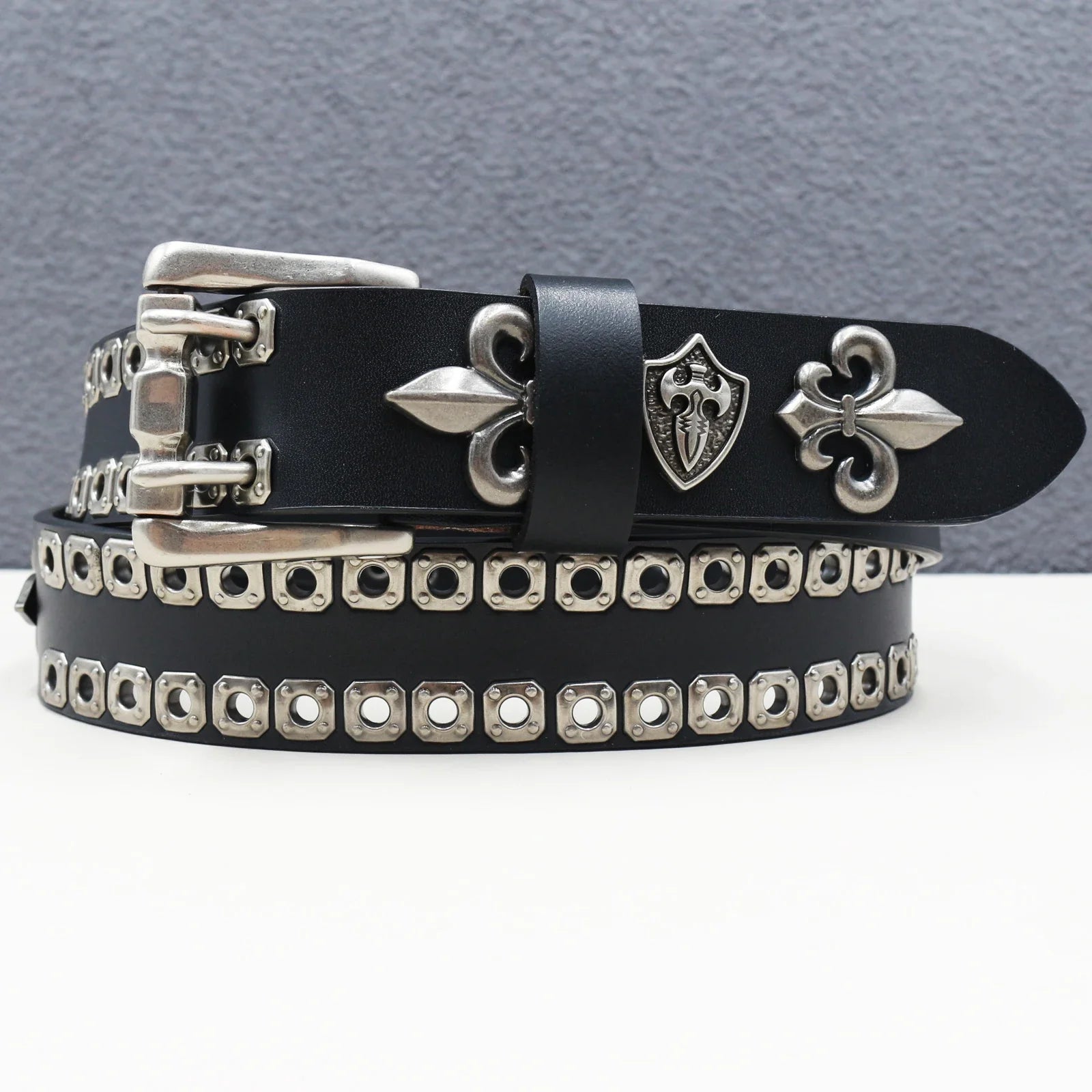 Make a bold statement with this heavy duty leather belt, featuring a goth-inspired skeleton rivet design for a trendy punk look. Crafted from genuine cowhide and split leather, it’s perfect for both men and women, ideal for hip-hop, Y2K, and subculture fashion styles.