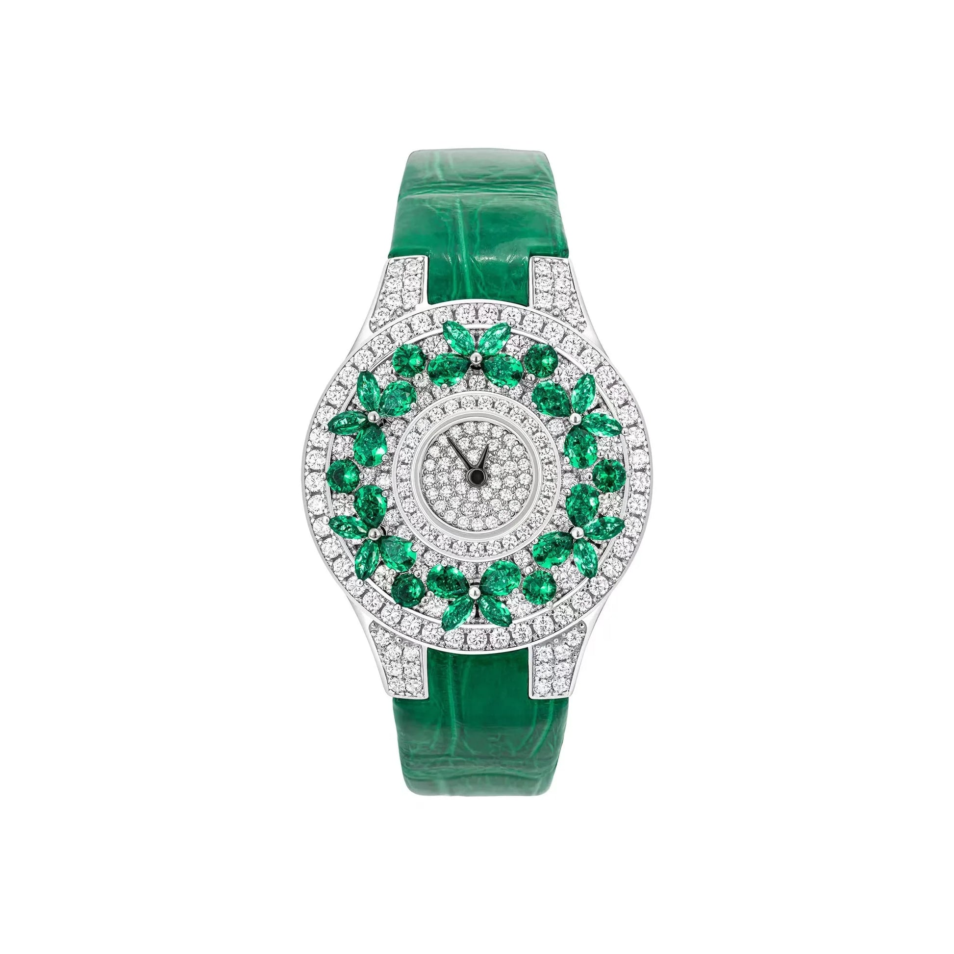 Experience elegance and sophistication with the RUIYI Luxury Diamond Emerald Women’s Watch. This exquisite timepiece features a radiant green dial surrounded by shimmering simulated diamonds and sapphires. Crafted from durable stainless steel, it blends timeless beauty with modern luxury — perfect for parties, formal occasions, or as a thoughtful gift.