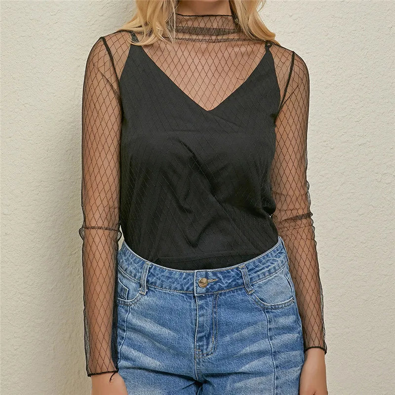 Sheer Lace Mesh Long Sleeve Top