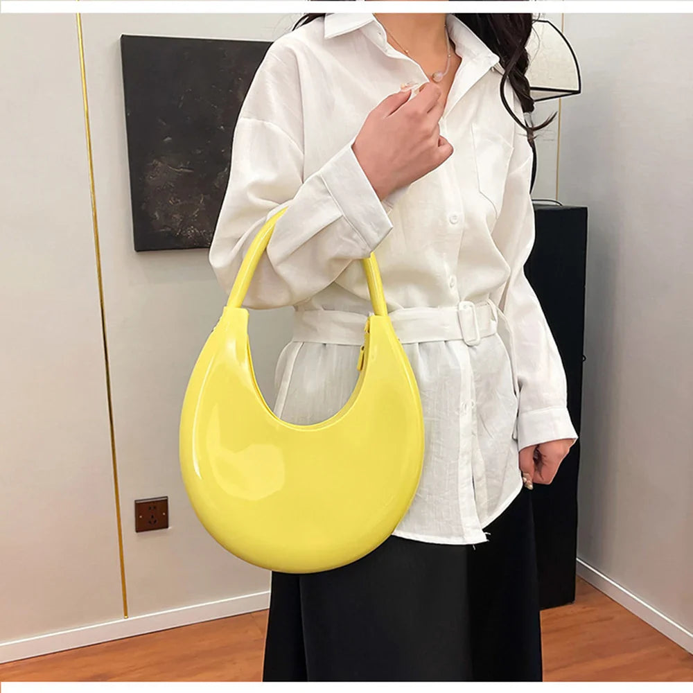 Trendy circular underarm bag with a sleek solid color design. Crafted from durable TPU material with a structured finish, perfect for versatile daily use.