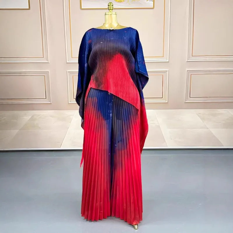 Step into effortless elegance with this Two-piece Pleated Outfit Set. This stylish set features a beautifully pleated top paired with matching pleated pants, creating a coordinated look that is both sophisticated and easy to wear. Crafted from lightweight, breathable fabric, it drapes smoothly over the body, giving you a flattering silhouette while keeping you comfortable all day.