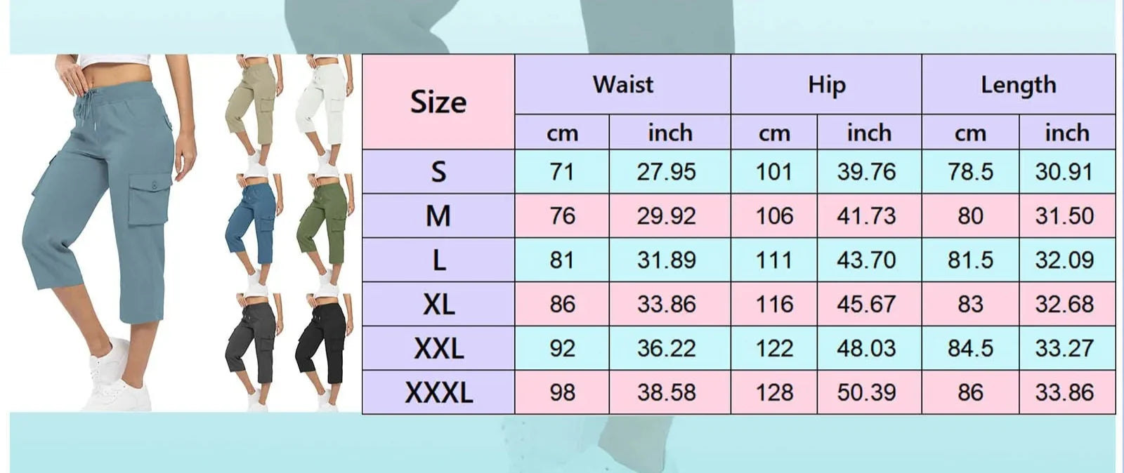 - 1x Women's Casual Cargo Capris